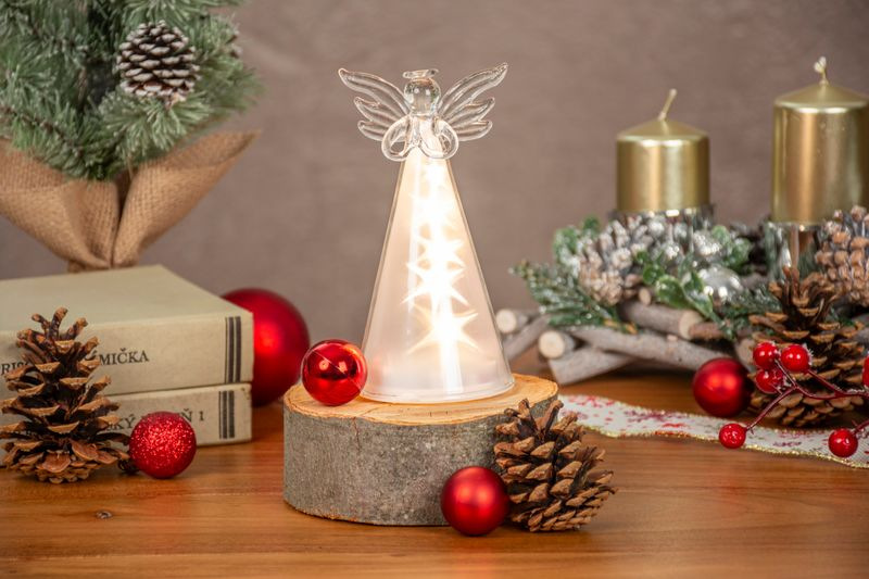 Dekorácia MagicHome Vianoce, anjel, LED, sklenený, 3xAAA, 7x15 cm