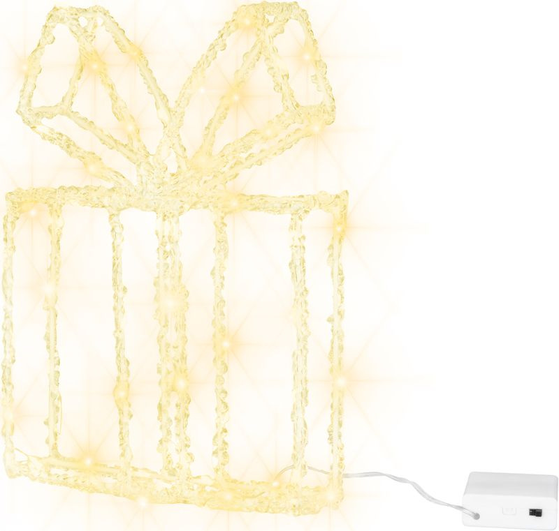 Dekorácia MagicHome Vianoce, darček, akryl, 80xLED teplá biela, 21x5x28 cm, 2xAA