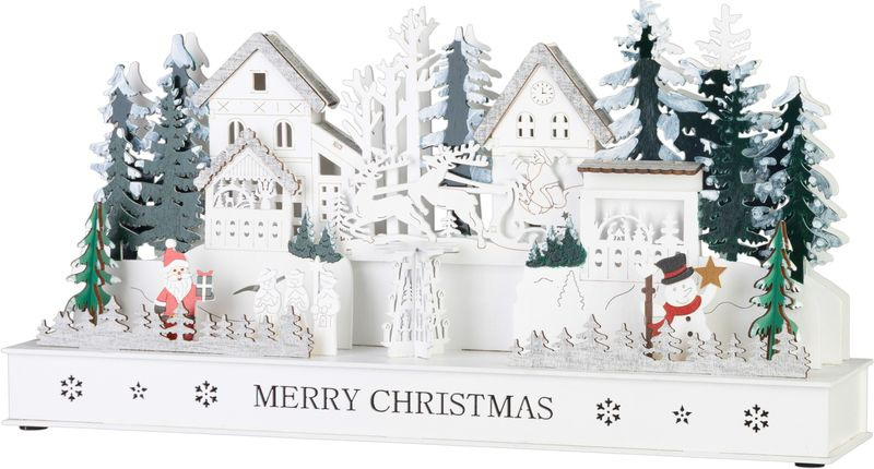 Vytvorte si doma čarovnú atmosféru Vianoc s nádhernou drevenou dedinkou MagicHome. Detailne spracované domčeky, stromčeky a zimné postavičky sú doplnené o 15 LED svetiel v teplej bielej farbe, ktoré navodia príjemné sviatočné osvetlenie.