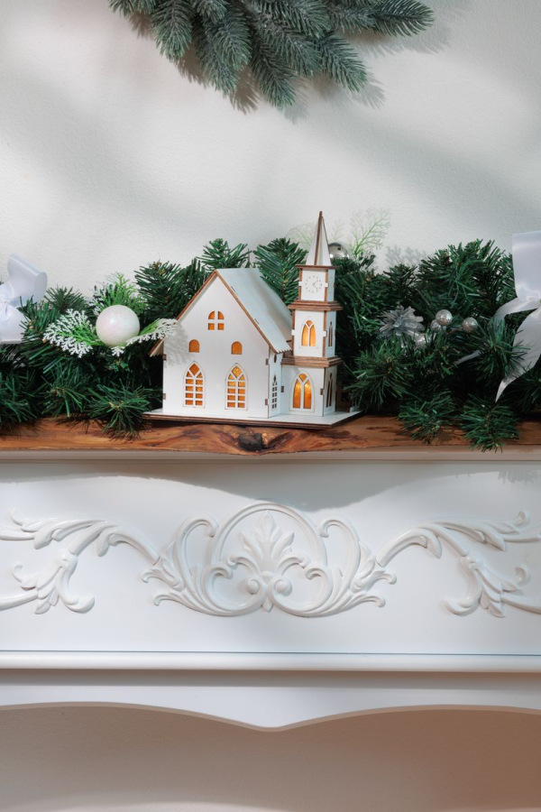 Elegantná vianočná dekorácia v tvare kostolíka z prírodného dreva rozžiari váš interiér príjemným, teplým svetlom. Vnútri je 6× LED (teplá biela), ktoré jemne presvitajú oknami a vytvárajú útulnú sviatočnú atmosféru na polici, komode aj na parapete.