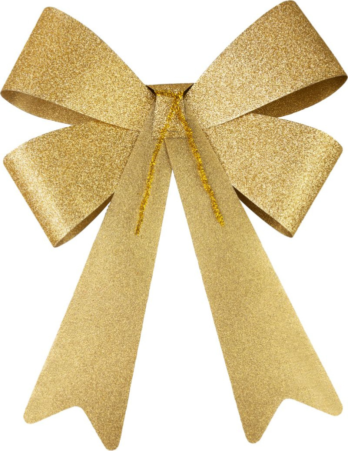 Dekorácia MagicHome Mašľa na vianočný veniec z trblietavého materiálu, ktorá rozžiari interiér vášho domu. Môže sa použiť aj na vianočnú girlandu. Farba mašle je zlatá a má rozmer 38 x 30 cm.