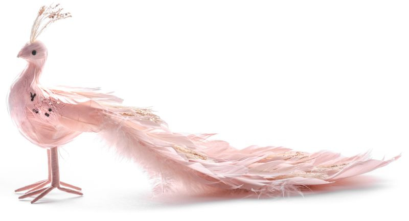 Dekorácia MagicHome Vianoce, Páv, ružový, páperový, 33x12x15 cm