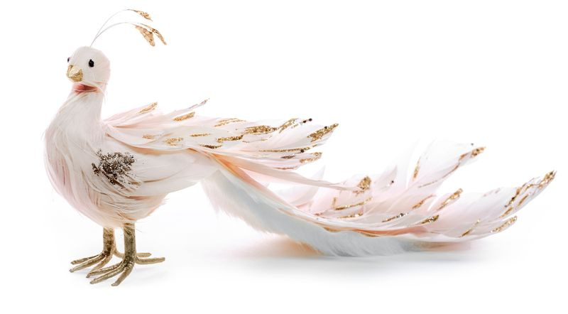 Dekorácia MagicHome Vianoce, Páv, ružový, páperový, 36x11x15 cm