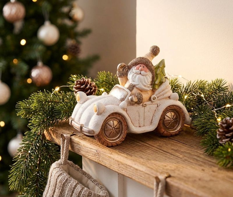 Dekorácia MagicHome Vianoce, Santa v aute, retro, keramika, 46,50x19,50x31,50 cm
