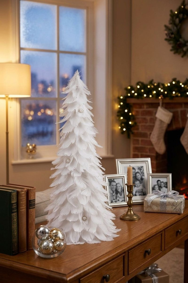 Dekorácia MagicHome Vianoce, Stromček z páperia, biely, 22x46 cm