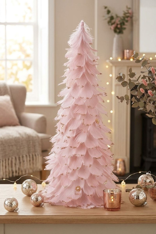 Dekorácia MagicHome Vianoce, Stromček z páperia, ružový, 22x46 cm