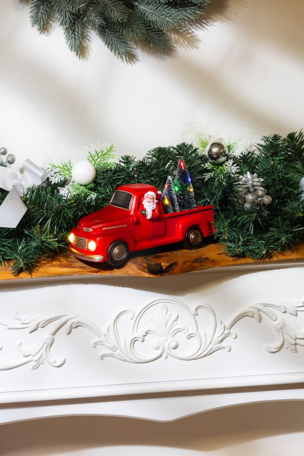 Dekorácia MagicHome Vianoce, Vianočné auto so santom, LED, 3xAA, interiér