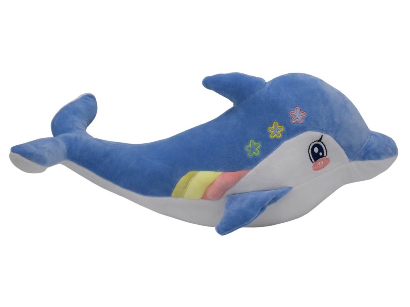 Delfín s výšivkami, má rozmer 50 cm. Možnosť výberu z dvoch farieb. Cena je za 1 kus. Vhodné pre deti 3+.