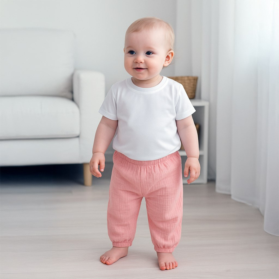 Štýlová a praktická 2-dielna detská súprava New Baby Kindergarten. Súpravička sa skladá z bavlneného trička s krátkym rukávom a mušelínových nohavíc. Veľmi praktický set pre deti aj do škôlky. Bavlnené tričko je veľmi pohodlné už len tým, že je vyrobené z kvalitnej bavlny, bez zapínania, s jemným lemom okolo krčku. Lem nesmie tlačiť, obopínať a tričko sa musí ľahko obliekať cez hlavičku. Mušelínové detské jednofarebné nohavice s moderným dizajnom sú ušité z kvalitného mušelínu. Pre veľmi ľahké obliekanie majú praktický voľný strih, v páse a na nohavičkách je gumička, ktorá netlačí. Nohavice sú veľmi vhodné aj na bežné detské činnosti. Zloženie: 100% bavlna. OEKO-TEX STANDARD 100.