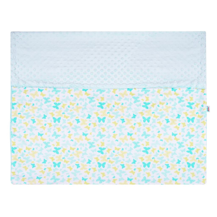 Detská deka New Baby. Deka je vyrobená z dvoch typov tkanín. Prvá je veľmi mäkká a na dotyk príjemná, hebká Minky látka s výstupkami pre stimuláciu senzomotoriky a druhá je 100% bavlna s originálnymi obrázkami a vzormi, ktoré pomáhajú deťom učiť sa nové veci a rozvíjať ich fantáziu. Je ideálna ako pre bábätká od narodenia, tak pre väčšie deti. Je vyrobená z veľmi kvalitného materiálu, ktorý nepúšťa farbu a nevyvoláva alergické reakcie. Rozmery: cca 80x102 cm. Zloženie: jedna strana: 100% bavlna, druhá strana:100% polyester.
