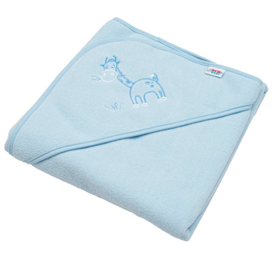 Detská froté osuška s výšivkou a kapuckou New Baby 80x80 modrá žirafka
