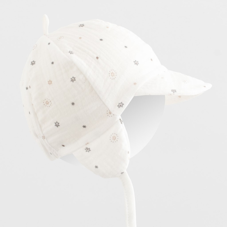 Letná mušelínová čiapočka so šiltom New Baby Arthur. Čiapočka ochráni hlavičku pred prudkým slnkom a vďaka šiltu, ktorý urobí tieň nespáli tváričku a chráni oči dieťaťa pred slnkom. Je krásne tvarovaná na ušká, zaväzuje sa na šnúrky, netlačí a bude dobre držať na hlavičke bábätka. Mušelín je jedna z najčistejších, najjednoduchších a najjemnejších tkanín na svete. Jemne tkaný priedušný materiál je tak dokonalý, že si ho zamilujú deti po celom svete. Ľahká štruktúra umožňuje mušelínu dýchať a zaisťuje dostatočnú cirkuláciu vzduchu, čím znižuje riziko prehriatia. Táto vlastnosť pomáha udržať Vaše dieťa v pohodlí, bezpečí a rodičov v pokoji. Mušelín je veľmi odolný a to tak, že bez problémov zvláda opakované pranie a postupom času je ľahší a jemnejší. Zloženie: 100% bavlna. OEKO-TEX STANDARD 100.