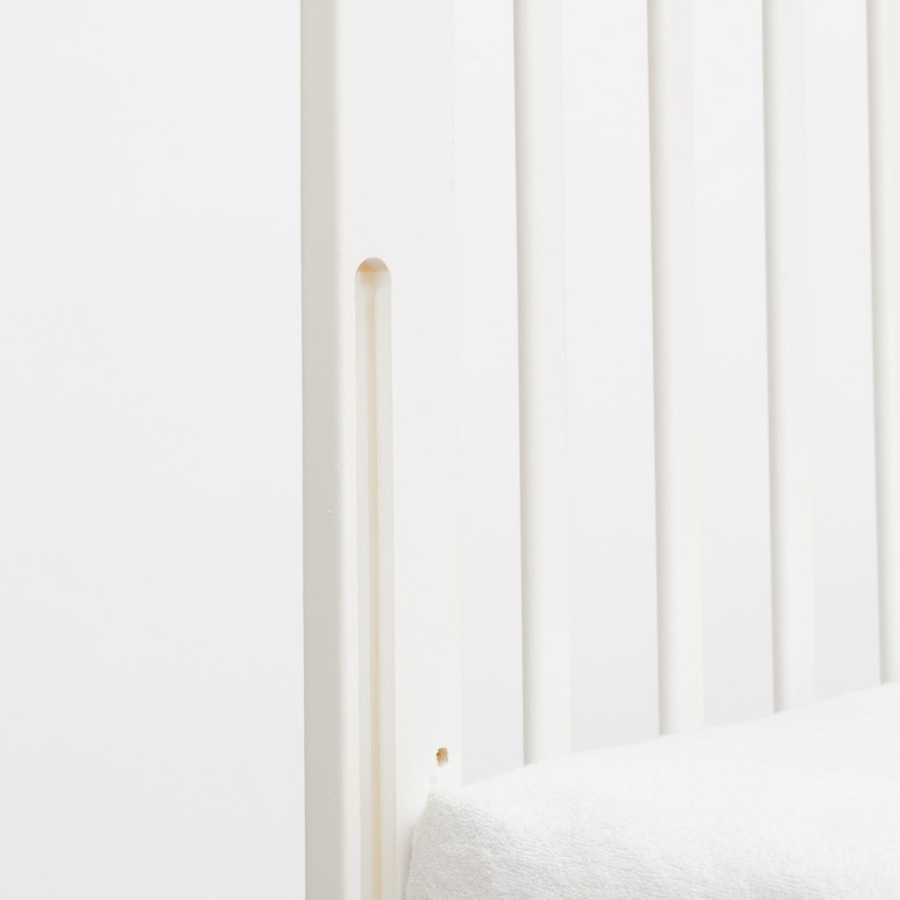 Boky postieľky sú vyrobené zo 100% borovicového dreva. Použité kvalitné ploché priečky sú osadené a ukotvené pomocou silného lepidla na vodnej báze. Postieľka má tri vyberateľné priečky.