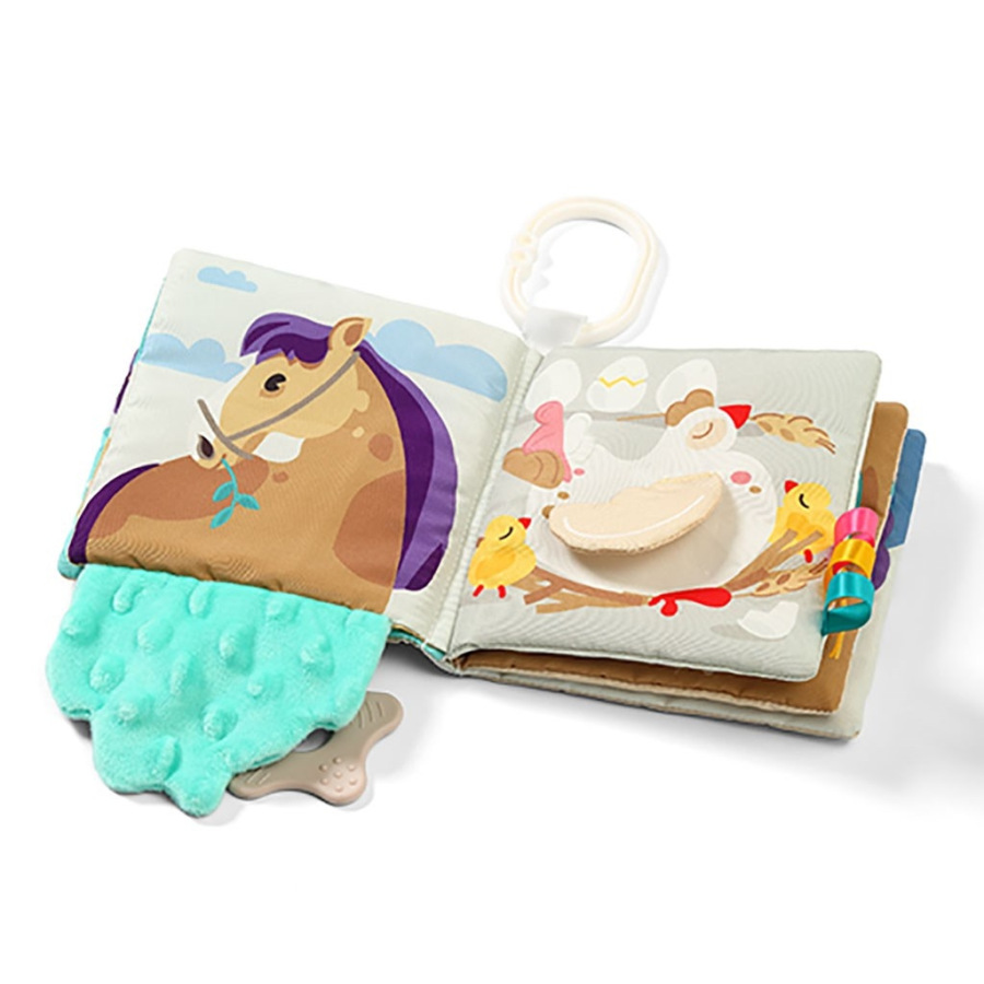 Knižka umožňuje získať nové zručnosti, od precvičovania úchopu, cez stimuláciu ďasien pomocou hrýzatiek s výstupkami, až po naučenie počítania a poznávania rôznych povrchov a tvarov. Má jasné, kontrastné farby, ktoré rozvíjajú zrak, predstavivosť a schopnosť sústrediť sa.