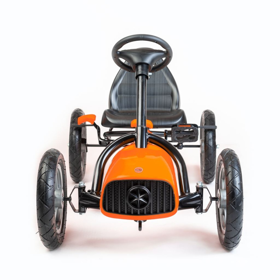Veľké nafukovacie pneumatiky zaistia komfort a pohodlie pri jazde na akomkoľvek povrchu. Motokára má zabudovaný reťazový pohon s možnosťou odpojenia pohonu - funkcia voľnobežky a ručnú brzdu na zadnej náprave.