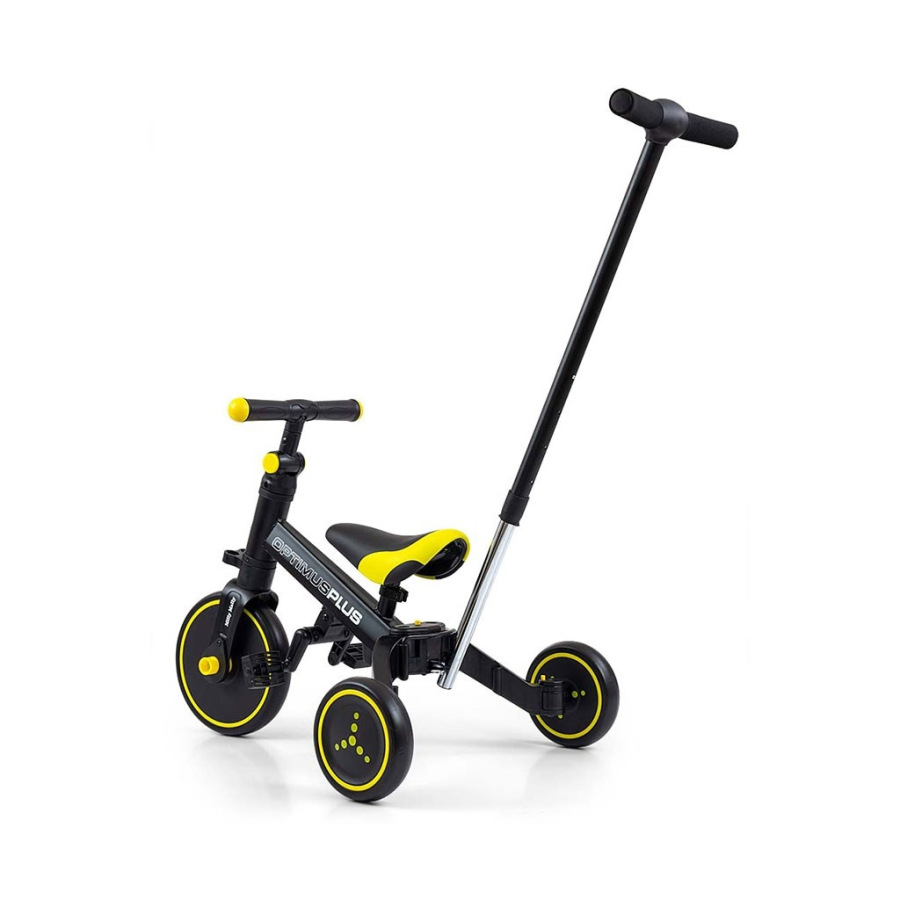 Detská trojkolka 4v1 Milly Mally Optimus Plus s vodiacou tyčou black