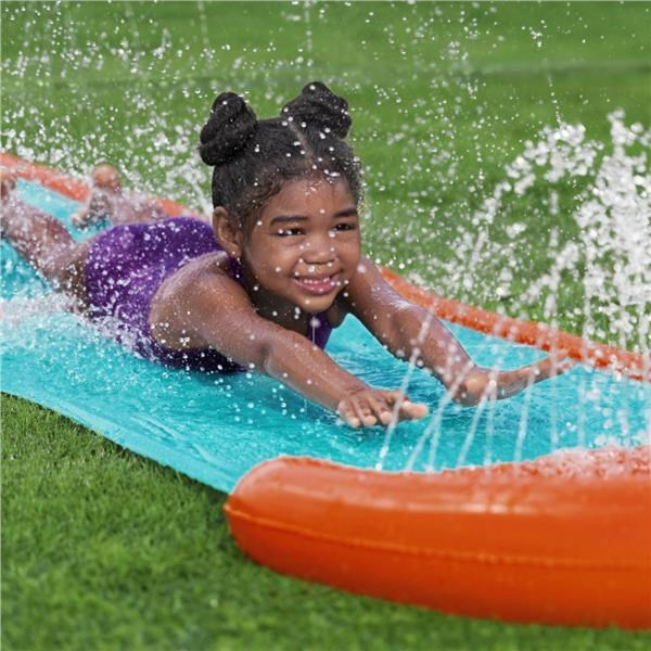Jednoduchá šmykľavka StompBlast je skvelá pre letnú zábavu na záhrade. Ideálna pre deti od 3 rokov, táto šmykľavka s jedným pruhom má spŕšky, ktoré sa aktivujú na požiadanie, keď deti šliapnu na podložku StompBlast, aby postriekali kamarátov pri pretekoch do cieľa. Vstavané spŕšky SplashBoost pokrývajú celú dĺžku šmykľavky a zaisťujú cielené zvlhčenie pre maximálnu klzkosť, striekanie a špliechanie.