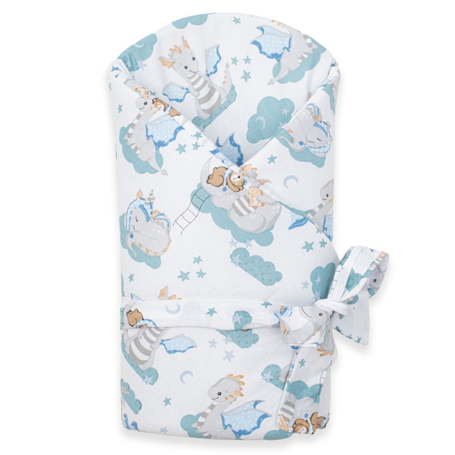 Nádherná detská zavinovačka New Baby Dráčik pre bábätká. Zavinovačka je vyrobená z kvalitného a jemného materiálu, ktorý zaručí vášmu bábätku príjemné teplo. Výplň je až 3 cm čo znamená, že zavinovačka je vhodná aj na chladnejšie dni a je dostatočne pevná. Krásny detský motív, polahodí detským očičkám. Zapínanie na suchý zips aj stuhu na zaviazanie na mašľu.