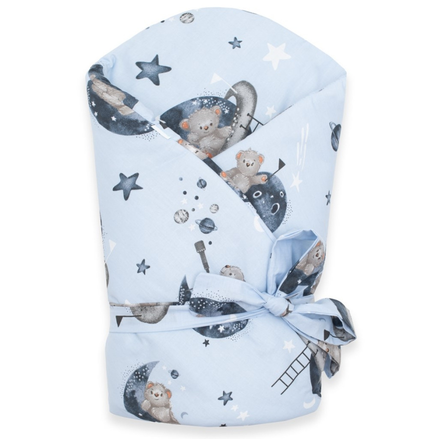 Nádherná detská zavinovačka New Baby Teddy bear in space pre bábätká. Zavinovačka je vyrobená z kvalitného a jemného materiálu, ktorý zaručí vášmu bábätku príjemné teplo. Výplň je až 3 cm čo znamená, že zavinovačka je vhodná aj na chladnejšie dni a je dostatočne pevná. Krásny detský motív, polahodí detským očičkám. Zapínanie na suchý zips aj stuhu na zaviazanie na mašľu.