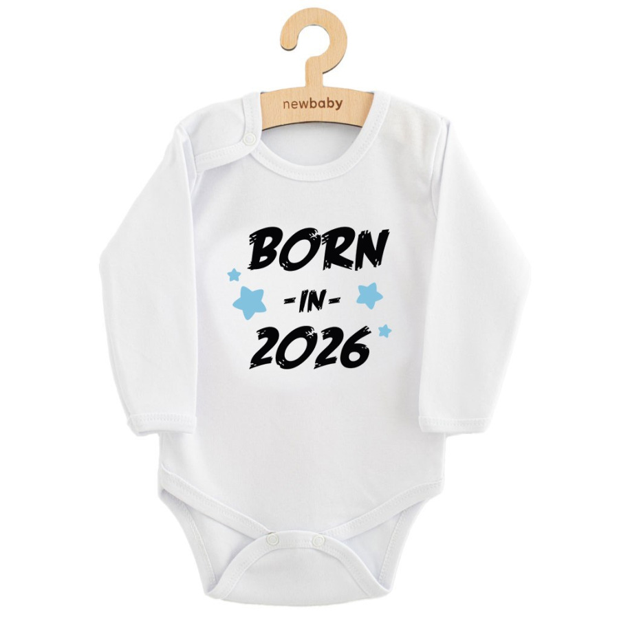 Detské body s potlačou New Baby BORN IN 2026 blue 56 (0-3m)
