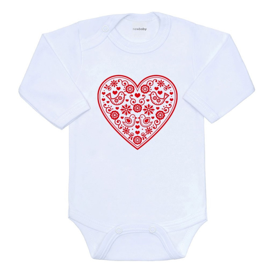 Detské body s potlačou New Baby Ľudový vzor červené srdiečko 74 (6-9m)