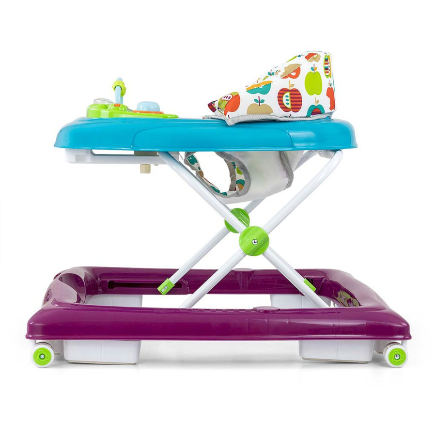Štyri kvalitné otočné kolieska, ktoré nepoškriabu povrch, po ktorom sa pohybujú, zaistí voľnosť pohybu a osem gumových zarážok ochráni dieťa pred skĺznutím zo schodov alebo iných prekážok.