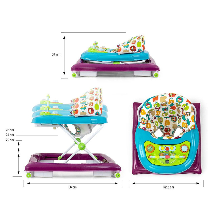 Výrobok má výukový panel, ktorý obsahuje množstvo prekvapení čakajúcich na malých prieskumníkov: svetielka, pískanie, melódie, hrkálka, tlačidlá a ďalšie pohyblivé prvky. Po sňatí panelu z podnosu chodítka poslúži ako samostatná hračka, napríklad ako spoločník na cesty, a doska poslúži ako hrací stolík.