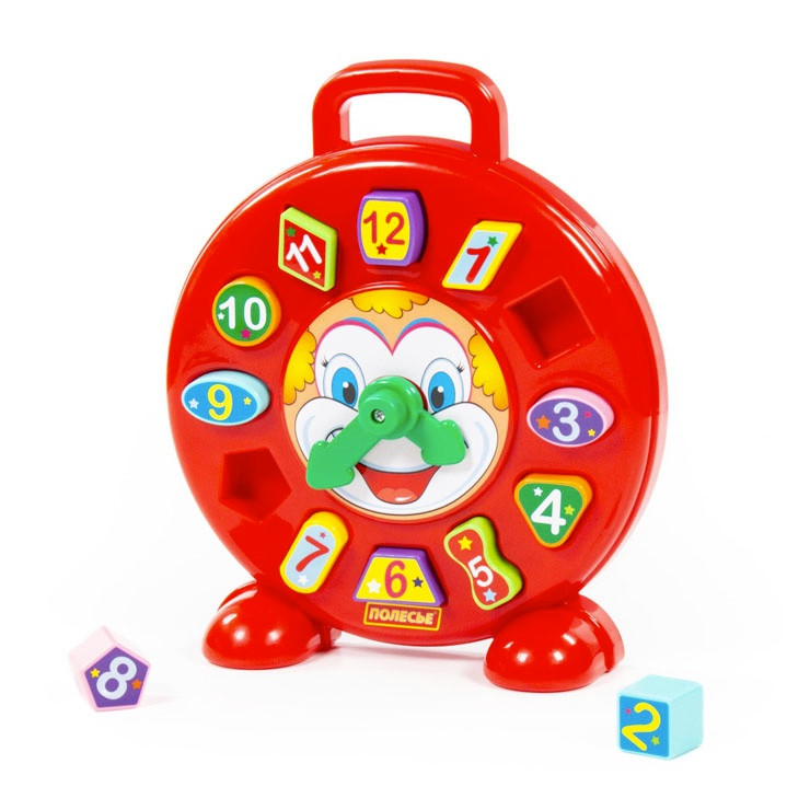 Detské hodinkyKlaun z továrne Polesie sú vzdelávacie hračky pre deti v predškolskom veku. Okolo hodiniek sú umiestnené otvory rôznych tvarov, do ktorých sú umiestnené rôzne figúrky. Takáto hra prispieva k rozvoju logického myslenia. Ruky s hodinami sa môžu pohybovať, čo umožňuje hračke ukázať rôzne časy. V hornej časti konštrukcie je pohodlná rukoväť, vďaka ktorej je vhodné presunúť hodinky aj k dieťaťu, a dole sú dve stabilné nohy, ktoré vám umožňujú umiestniť hračku vo zvislej polohe. Počas hry s hodinami sa dieťa nielenže naučí rozoznať čas podľa polohy rúk, ale tiež sa oboznámi s farbou, geometrickými tvarmi a naučí sa aj čísla. Hodinky klaun sú vyrobené z vysoko kvalitných materiálov a vydrží dlho.
