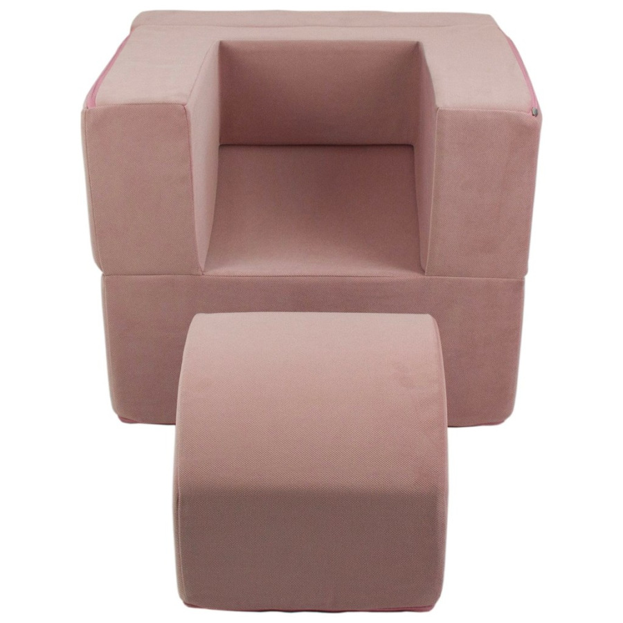 Sedačka sa veľmi rýchlo stane obľúbeným miestom vášho dieťaťa na oddych alebo hranie. A vďaka svojmu všestrannému a elegantnému štýlu sa ľahko zmestí do interiéru každej miestnosti. Skladá sa z dvoch častí. Z kocky a kresielka, ktoré má vyklápaciu opierku rúk. Po sklopení opierky rúk, stačí už len do stredu doplniť kocku a z kresielka je sedačka-lenoška.