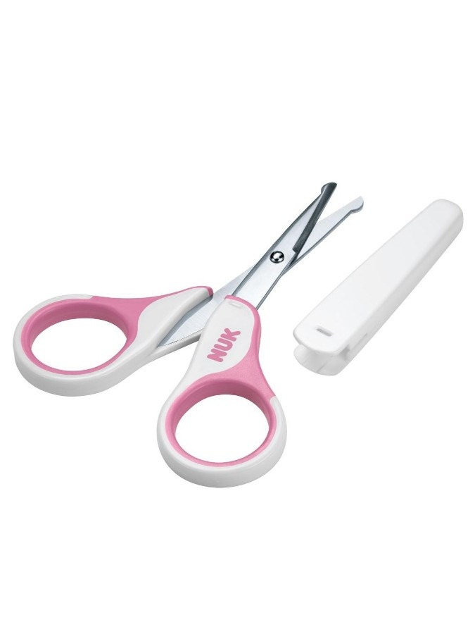 Detské zdravotné nožnice s krytom NUK. Bezpečné nožnice na jemné detské nechtíky. Ideálny pre bábätká, ktorým rastú nechty rýchlo a je potrebné sa o ne starať. Špeciálne zaoblený tvar nožníc znižuje riziko poranenia detských prstíkov, zaručujú ľahké a rýchlo strihanie. Nožnice sú vyrobené z kvalitnej nerezovej ocele. Určené pre deti od prvých dní života.