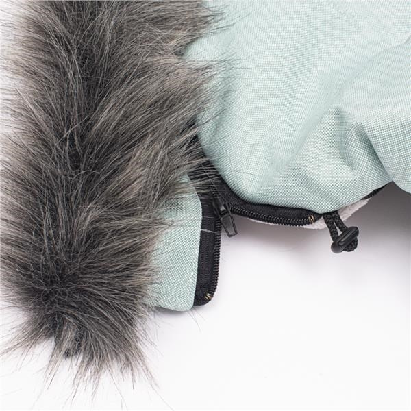 - kapucňa, ktorá chráni hlavičku dieťaťa, je zakončená štýlovú umelou kožušinou, ktorú možno odstrániť