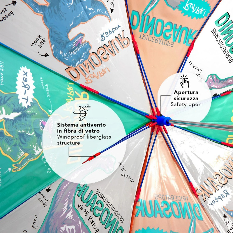 Detský reflexný transparentný dáždnik Perletti Cool Kids "Dinosaur", 15653