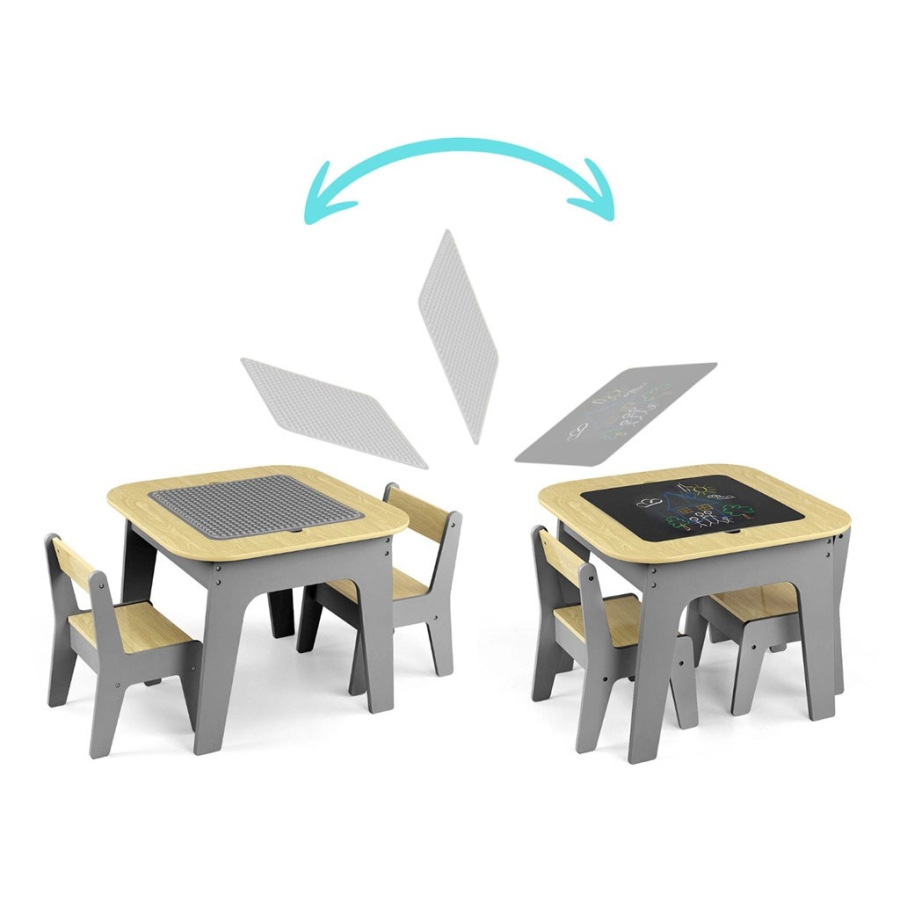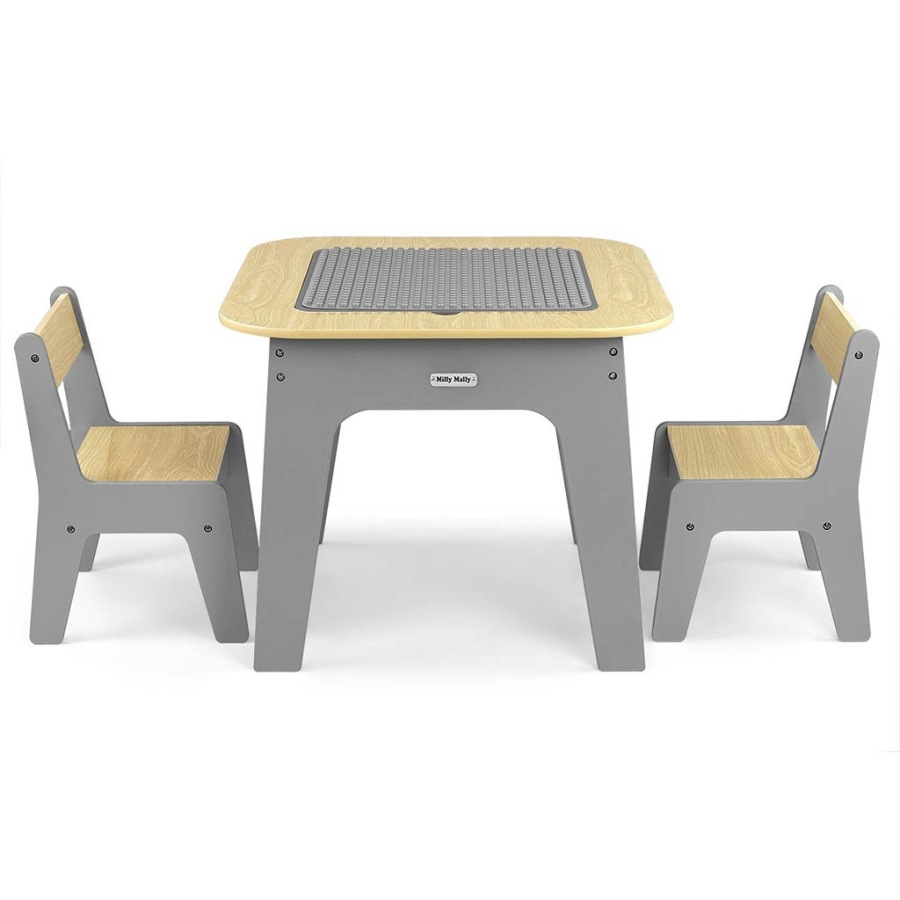 Set Olaf Blocks sa vyznačuje jedinečnou doskou stola – jedna strana je prispôsobená pre stavebné kocky, vďaka čomu je stolík ideálnym základom na stavanie. Druhá strana je hladká a ideálna na kreslenie, písanie alebo iné tvorivé aktivity. Doska je odnímateľná a pod ňou sa nachádza priestranný úložný priestor, ktorý uľahčuje uskladnenie hračiek, kociek alebo výtvarných potrieb, čo pomáha udržiavať poriadok.