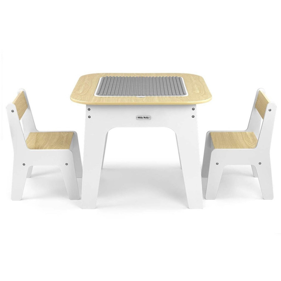 Set Olaf Blocks sa vyznačuje jedinečnou doskou stola – jedna strana je prispôsobená pre stavebné kocky, vďaka čomu je stolík ideálnym základom na stavanie. Druhá strana je hladká a ideálna na kreslenie, písanie alebo iné tvorivé aktivity. Doska je odnímateľná a pod ňou sa nachádza priestranný úložný priestor, ktorý uľahčuje uskladnenie hračiek, kociek alebo výtvarných potrieb, čo pomáha udržiavať poriadok.