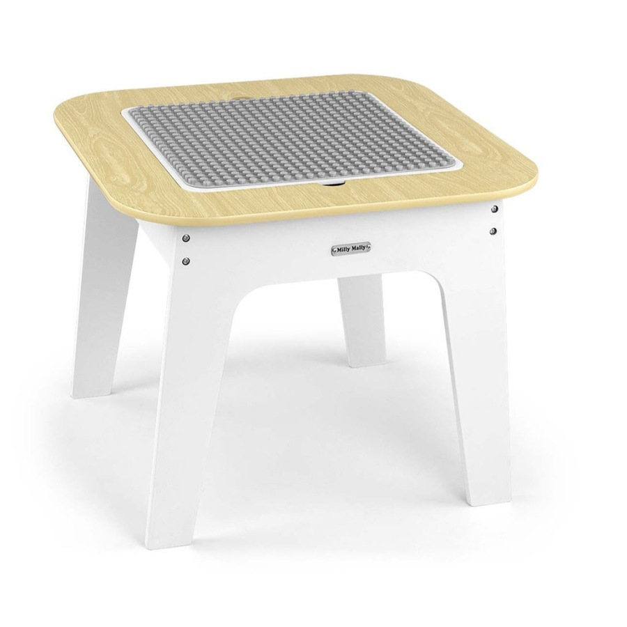 Set Olaf Blocks sa vyznačuje jedinečnou doskou stola – jedna strana je prispôsobená pre stavebné kocky, vďaka čomu je stolík ideálnym základom na stavanie. Druhá strana je hladká a ideálna na kreslenie, písanie alebo iné tvorivé aktivity. Doska je odnímateľná a pod ňou sa nachádza priestranný úložný priestor, ktorý uľahčuje uskladnenie hračiek, kociek alebo výtvarných potrieb, čo pomáha udržiavať poriadok.