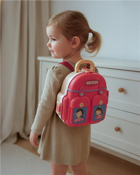 Detský kozmetický salón v batohu obsahuje makety kozmetických výrobkov, zrkadlo a mnoho ďalšieho. Tento batoh určite poteší všetky malé princezné.