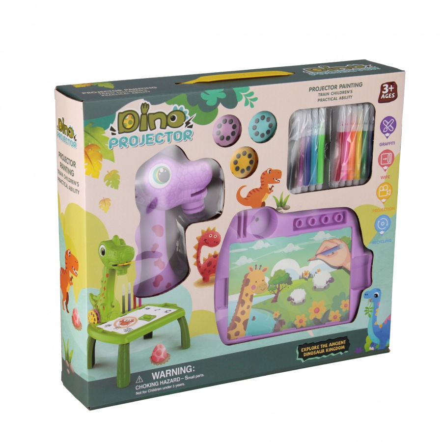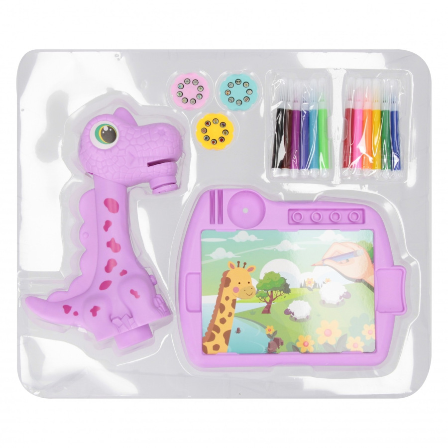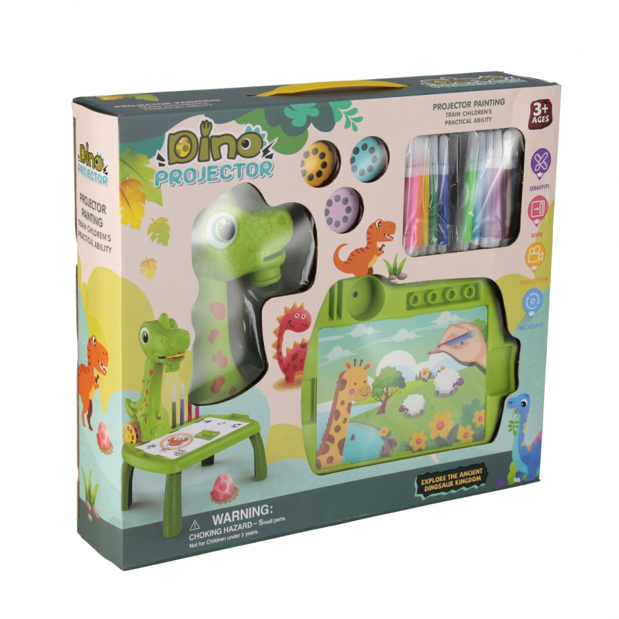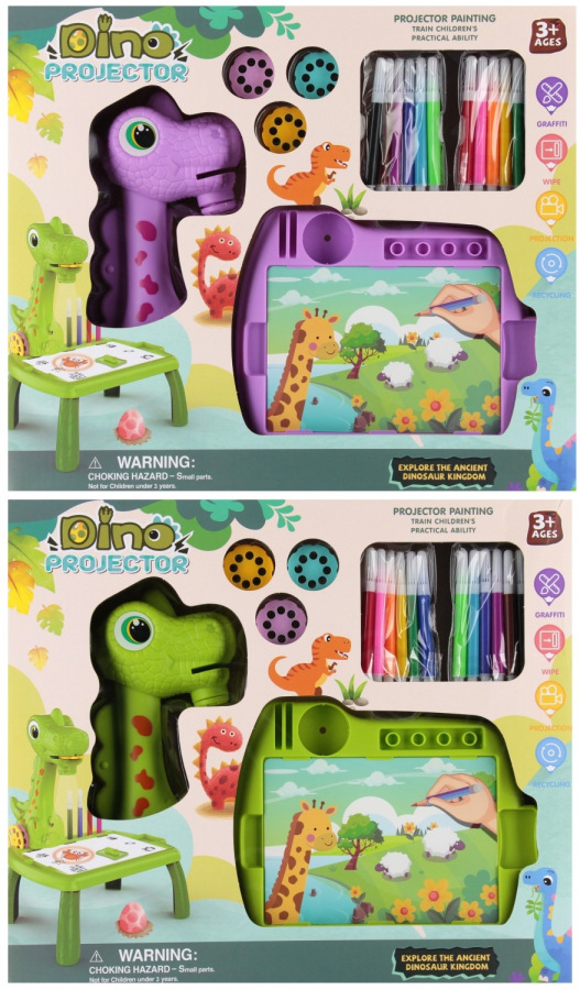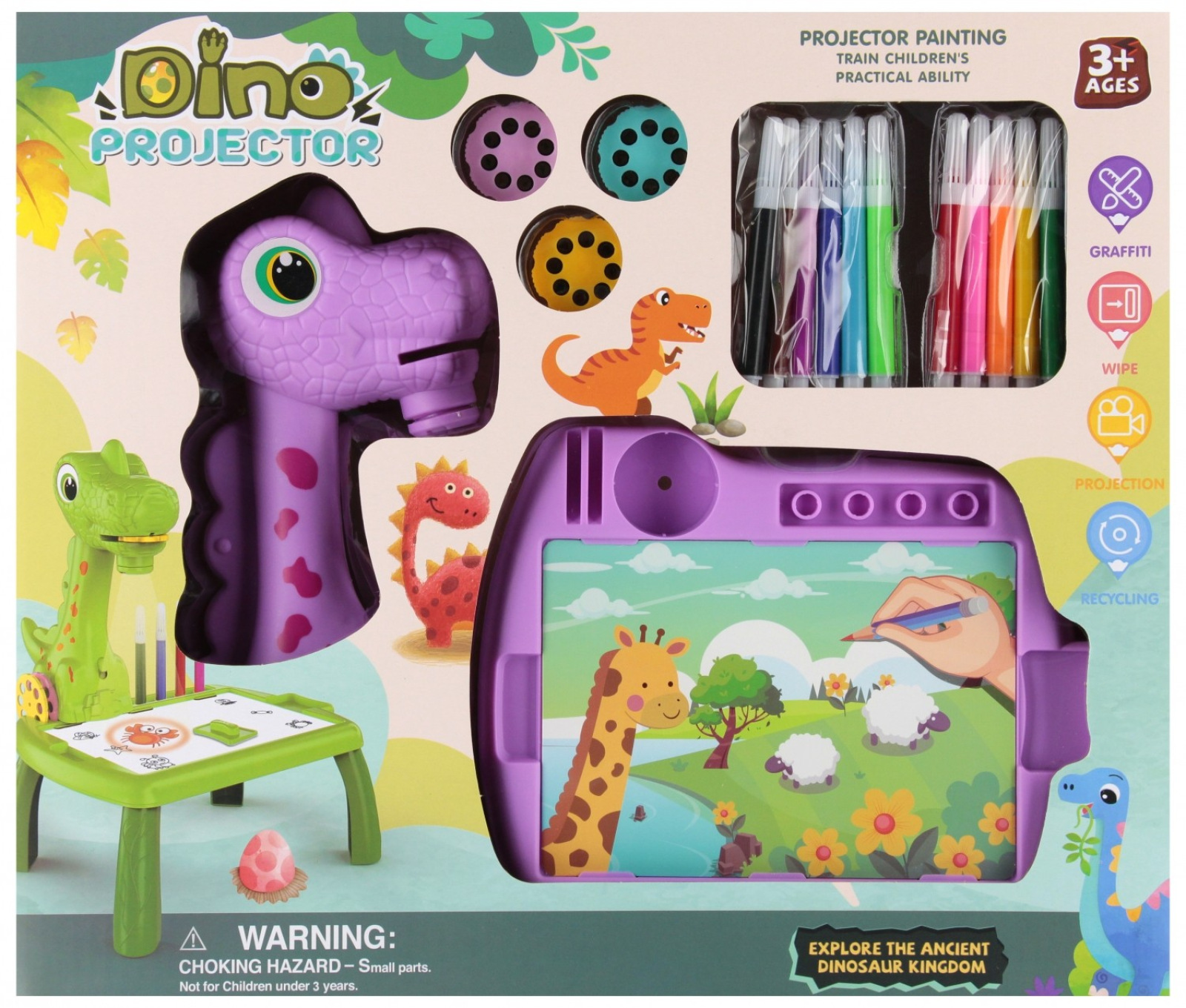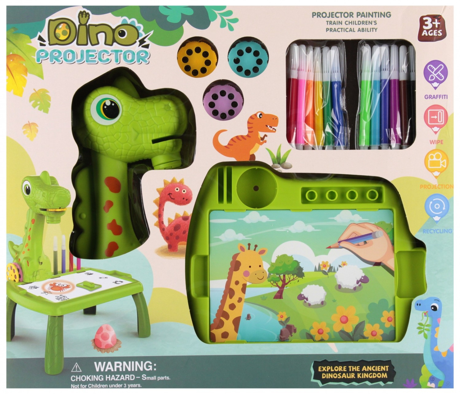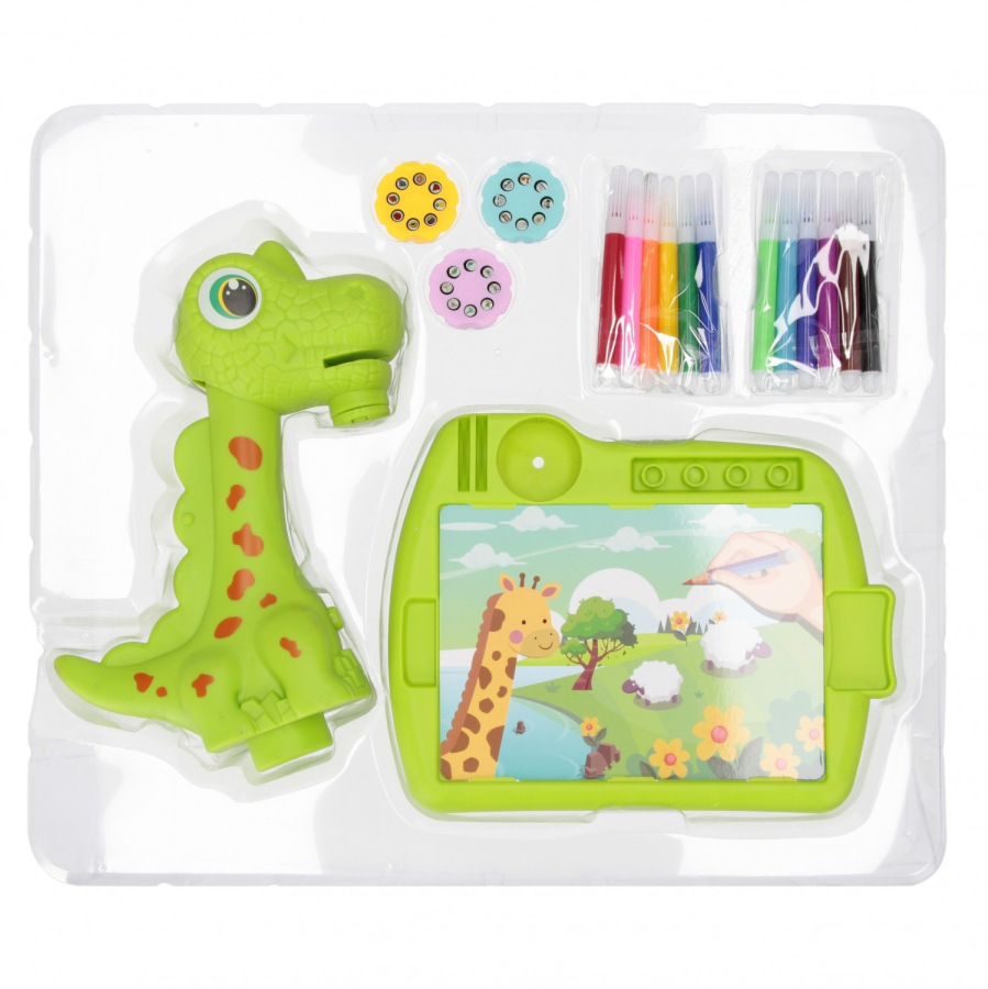 Dino kresliaci projektor s príslušenstvom je skvelá kreatívna hračka pre všetky deti, ktoré radi kreslia a maľujú. Pomocou projektora môžu premietať obrázky na papier a jednoducho ich obkresliť. Súčasťou je stolík v tvare dinosaura, tri kotúče s rôznymi obrázkami, notes, dve sady fixiek v šiestich farbách a handrička na stieranie. Deti si tak môžu precvičiť kreslenie, sústredenie aj jemnú motoriku. Projektor vyžaduje 2 batérie typu AA nie sú súčasťou balenia. Odporúčané od 3 rokov. Cena za kus.