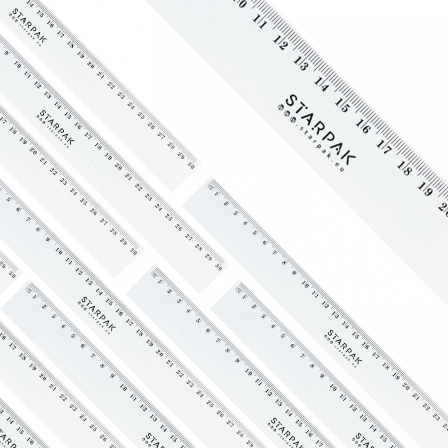 Dlhé Pravítko z odolného, ​​priehľadného plastu so zaoblenými koncami. Je dlhé 30cm. Balené vo fólii s vešiakom.