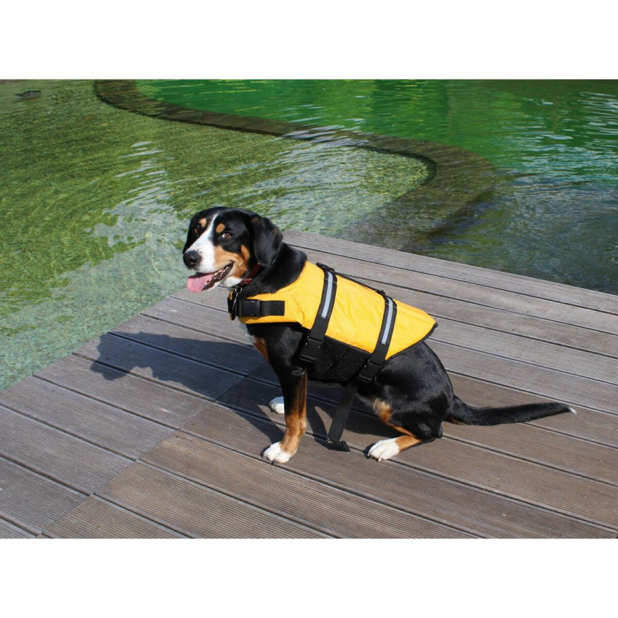 Užívať si leto a nemať obavy o svojho štvornohého maznáčika je sen každého starostlivého pána. Dog Swimmer plávacia vesta pre psov vám ušetrí starosť o vášho psíka, keď viete, že nie je práve zdatný plavec. Vesta je vyrobená z 90% PVC a 10% nylonu. Má jednoduché zapínanie vďaka nastaviteľným trom prackám a suchému zipsu okolo hrudi psa. Horná časť vesty je vybavená svetlo-odrážajúcimi prvky pre lepšiu viditeľnosť v tme, madlom k prenosu a plastovým očkom na pripnutie vodítka. S vestou Dog Swimmer bude váš maznáčik ľahko nadnášaný nad vodou a môže si tak lepšie zvyknúť na vodné prostredie. Vestu ponúkame v niekoľkých farebných prevedeniach a veľkostiach. Veľkosť: XS