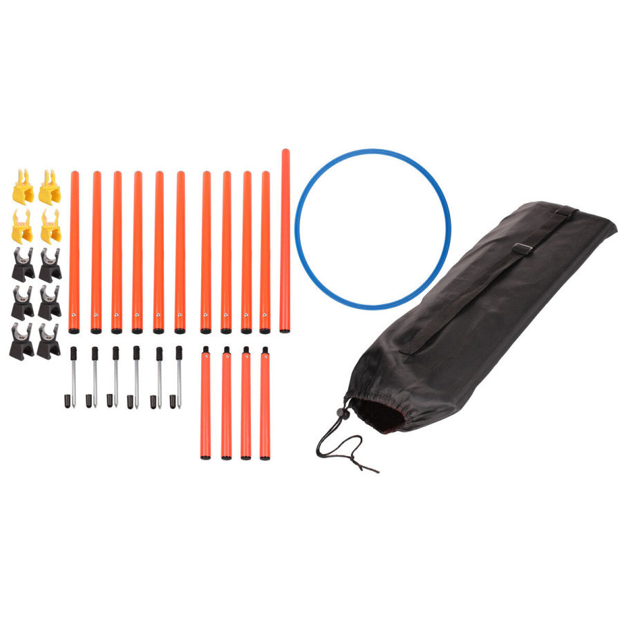 Vytvorte vonkajšie prekážkovú agility dráhu pre vášho štvornohého maznáčika.Merco Dog Trainer agility prekážky pre psov sú vyrobené z PVC a dajú sa medzi sebou rôzne prepájať. Vďaka naskrutkovaným 11 cm dlhým kovovým bodcom prekážky ľahko a pevne zapichnete do zeme. Postaviť môžete napríklad slalom, prekážky na preskoky, preskakovaciu prekážku s kruhom, v tvare striešky, alebo môžete rôzne prekážky vzájomne kombinovať. Záleží len na vašej fantázii a schopnostiach vášho psíka. Maximálna výška prekážok je 50 cm, môžete ich však ľahko znížiť posunutím plastových spojok po postranných tyčiach. Šírku prekážok si môžete zvoliť z dvoch variantov (55 alebo 80 cm), a to vďaka rozkladacím tyčiam, ktoré k sebe zoskrutkujete. Sada je uložená v praktickom polyesterovom vaku, v ktorom ju pohodlne prenesiete na miesto tréningu. Vďaka agilite sade Merco Dog Trainer pripravíte maznáčika na závody a doprajete mu potrebný pohyb. Balenie obsahuje: