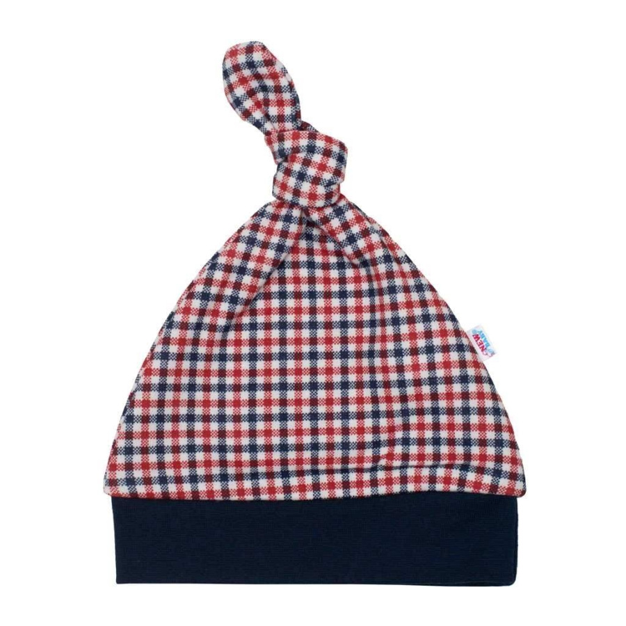 Dojčenská čiapočka New Baby Checkered. Čiapočka je celopotlačená znovu moderným kockovaným vzorom a zdobená roztomilým uzlíkom v hornej časti. Lem je jednofarebný, široký a netlačí na hlavičku bábätka. Čiapočka je vyrobená z veľmi príjemnučkého materiálu, v ktorom sa bude vaše bábätko cítiť veľmi príjemne. Materiál: 100% bavlna.