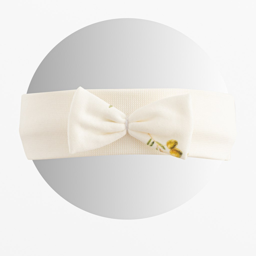 Krásna, módna bavlnená dievčenská čelenka New Baby Olivy, poteší všetky malé parádnice. Čelenka je zdobená olivkami, je pružná a dobre sa prispôsobí hlavičke bábätka.