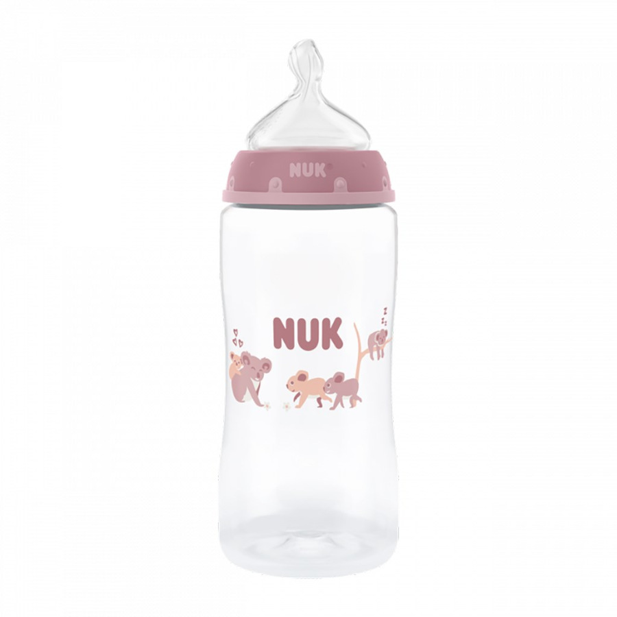 Dojčenská fľaša NUK First Choice s kontrolou teploty. Špeciálny tvar typický pre cumlík NUK s ortodontickým antikolikový cumlíkom je modelovaný podľa materskej bradavky pri dojčení. Dojčenské fľaše sú teraz vybavené novou NUK kontrolkou teploty a pomáhajú tak zabrániť tomu, aby vaše dieťa pilo príliš horúci príkrm. Kontrolka vyzerá ako teplomer, je umiestnená medzi ryskami a teplota obsahu fľaše zmení jej farbu. Ak je príkrm príliš horúci, modrá kontrolka sa zmení na bielu. Vyrobená z vysoko kvalitného nerozbitného plastu polypropylénu a neobsahuje BPA (Bisfenol A). Obsah fľaše 300 ml. Vhodná pre deti od 3 mesiacov M (stredne veľký otvor = pre detskú výživu). Klinicky testované.