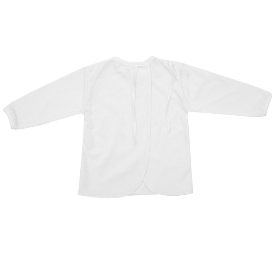 Dojčenská tenká bavlnená košieľka. Košieľka je biela so zaväzovaním vzadu na šnúrky. Zloženie 100% bavlna. Rozmer: dĺžka od ramienok cca 29 cm, obvod hrudníka cca 42 cm, dĺžka rukáva cca 24 cm.