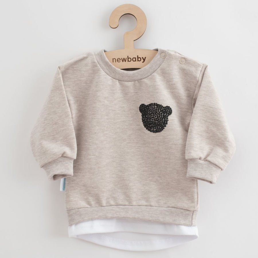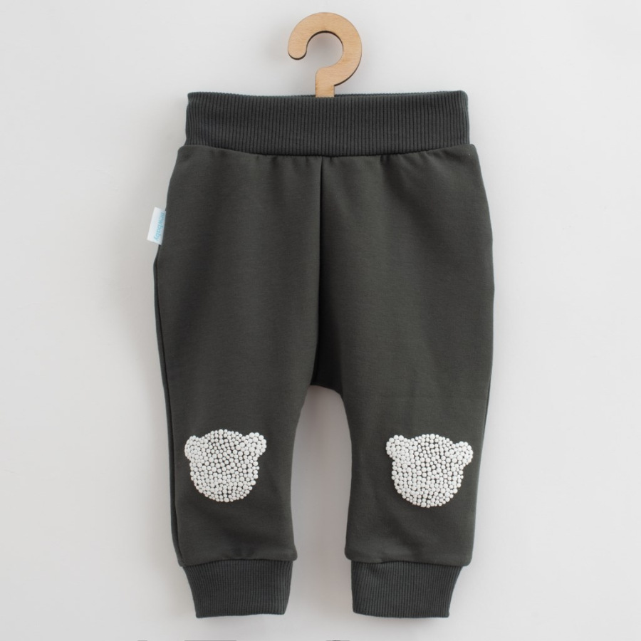 Štýlová 2-dielna dojčenská súpravička New Baby Brave bear. Súpravička sa skladá z trička a teplákov. Tričko s dlhým rukávom so zapínaním na cvočky na ramienku, je vyrobené s príjemnej teplákoviny. Je zdobené zaujímavým 3D obrázkom medvedíka. Tričko má v spodnej časti bavlnenú vsadku, ktorá dodáva šmrncovný vzhľad. Tepláčky s pružným lemom v páse a na nohavičkách sú vyrobené s pohodlnej teplákoviny. Na kolienkach je ABS potlač v tvare medvedíka. Ochráni tak kolienka dieťaťa pri lezení. Zloženie: 96% bavlna, 4% elastan.