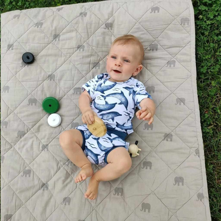 Roztomilé a štýlové bavlnené kraťasky-bloomers Nicol Dolphin. Kraťasy zdobí potlač delfínov. Majú pružný lem v páse a preto netlačia na bruško dieťaťa, sú vyrobené z veľmi príjemného, mäkkého a kvalitného materiálu. Bez zapínania. Zloženie: 100% bavlna.