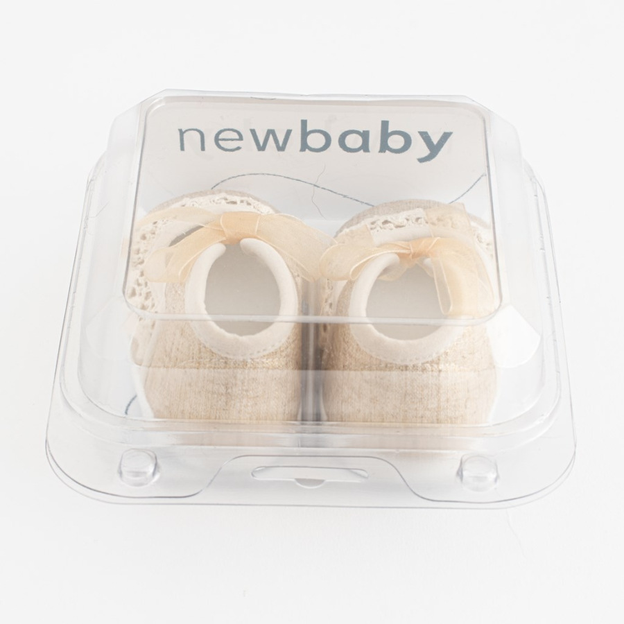Dojčenské capačky New Baby pre bábätká. Krásne topánočky sú v štýle dievčenských sandálok s moderným vzhľadom na zaviazovanie. Topánočky priliehajú k nožičke a majú široké vnútro, čo umožňuje voľný pohyb prstov a svalov. Výrobok nie je určený na chôdzu. Sú veľmi ľahké s tenkou syntetickou podrážkou. Zloženie: krajka-100% polyester. Podrážka: syntetický materiál PVC bez BPA. Dĺžka vnútornej stielky 10 cm. Určené pre deti 0-3 mesiacov. Dodávané v praktickej krabičke. Upozornenie: pod textilnou vložkou sa niekedy nachádza papierová vložka, ktorá drží tvar capačky. Pred prvým použitím odstráňte túto papierovú vložku.