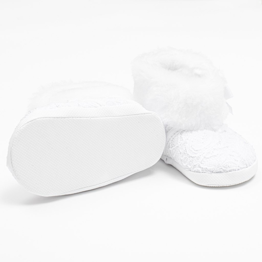 Dojčenské zimné capačky New Baby pre bábätká. Krásne, teplé krajkové kozačky na suchý zips. Vnútorná časť je vystlaná rúnovou pleteninou-100% polyester. Topánočky priliehajú k nožičke a majú široké vnútro, čo umožňuje voľný pohyb prstov a svalov. Výrobok nie je určený na chôdzu. Sú veľmi ľahké s tenkou syntetickou podrážkou. Zloženie: 100% polyester, rúnová pletenina-100% polyester. Podrážka: syntetický materiál PVC bez BPA. Dĺžka vnútornej stielky 11 cm. Určené pre deti 3-6 mesiacov. Dodávané v praktickej krabičke. Upozornenie: pod textilnou vložkou sa niekedy nachádza papierová vložka, ktorá drží tvar capačky. Pred prvým použitím odstráňte túto papierovú vložku.