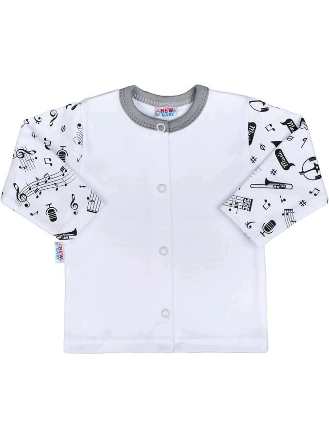 Bavlnený dojčenský kabátik New Baby Music pre bábätká. Kabátik je jednofarebný a rukávky sú celopotlačené notičkami a hudobnými nástrojmi. Zapínanie na cvočky po celej dĺžke uľahčuje obliekanie a prebaľovanie bábätka. Mäkký, príjemný a veľmi kvalitný materiál zaručí spokojnosť Vášho dieťaťa. Náš hravý kabátik je vhodný pre chlapcov aj dievčatká. Zloženie: 100%. Rozmery: obvod okolo hrudníka cca 46 cm, dĺžka rukáva cca 22 cm, celková dĺžka cca 29 cm.