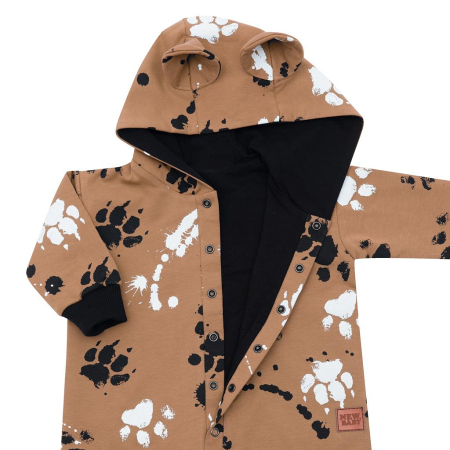 Nápaditý bavlnený dojčenský overal New Baby Paw. Overal je celopotlačený detským vzorom. Je vyrobený z kvalitného bavlneného materiálu s elastanom a bavlnenou podšívkou. Materiál je hladký a príjemný na dotyk. Praktické zapínanie na cvočky po celej dĺžke veľmi uľahčí obliekanie a prebaľovanie. Overal má praktickú kapucňu s uškami, širšie pružné lemy na rukách a nohavičkách a celá vnútorná strana je zateplená bavlnenou podšívkou, ktorá zvyšuje komfort nosenia. Bábätko sa bude cítiť v overale veľmi pohodlne a príjemne. Zloženie: 95% bavlna, 5% elastan, podšívka-95% bavlna, 5% elastan. Vhodné na jar a na jeseň.